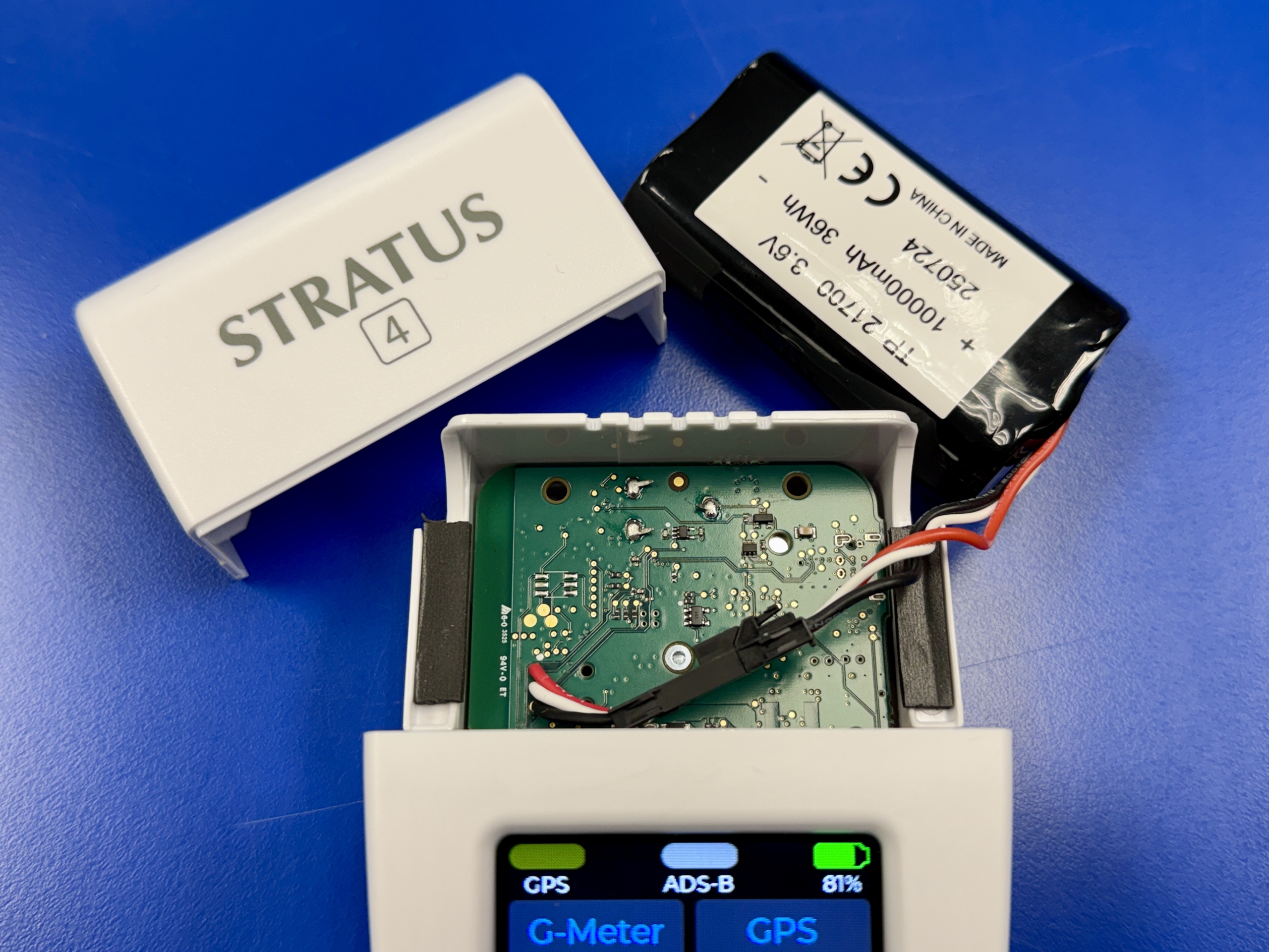 Stratus 4 includes an 8-hour rechargeable battery that will last for all but the longest flying days. What’s notable in this new version is that the battery is now user-replaceable from the top of the unit when it reaches the end of life, and requires no special tools to swap it out. This is a big deal and the first time we’ve seen this in a portable ADS-B receiver, and it will make pilots feel more comfortable knowing they can easily service the unit in the future.