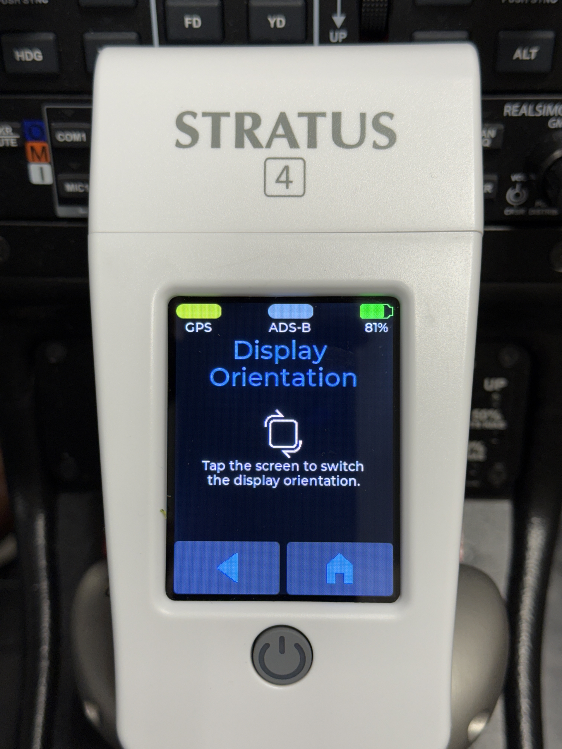 When changing the Stratus 4 orientation in the cockpit, you’ll want to adjust the screen orientation as well to keep the data blocks easy to read. This is accessed from the main Settings button on the screen: