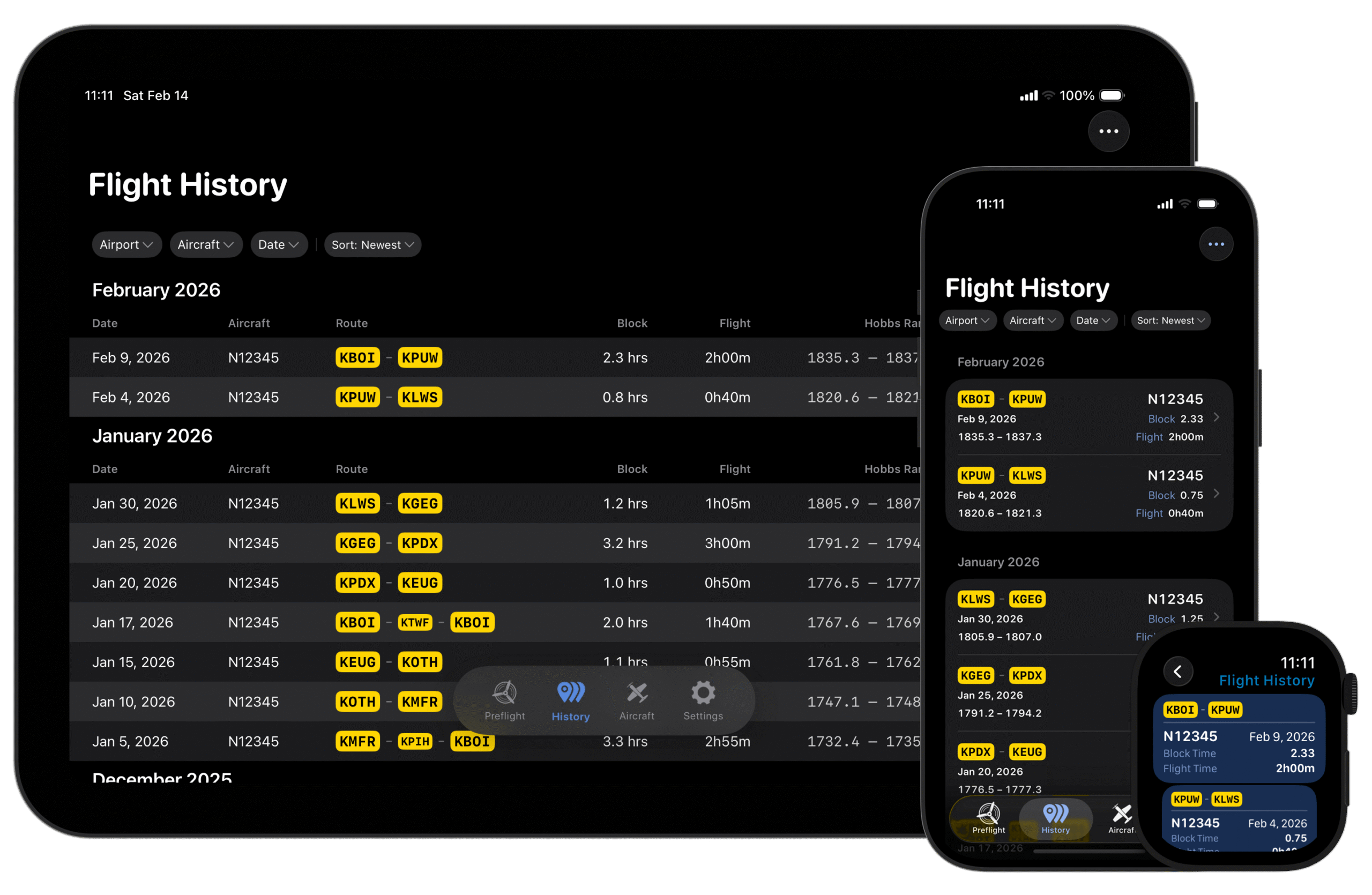 The most recent update adds a new iPad app, allowing you to take advantage of all the app’s features on a larger screen. The app syncs all of your data via iCloud, so you’ll automatically see your aircraft and flight history in the new iPad app. The standout feature is its full support for multitasking, including Slide Over, Split View, and the new windowed mode in iPadOS 26. This allows you to keep the app in view right alongside your favorite EFB app in flight.