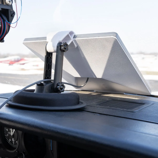 The Dash Mount combines a suction cup with an adhesive backing and a weighted bean bag for non-permanent, secure placement. A silicone anti-slip strip helps keep your unit exactly where you need it. Ideal for pilots who prefer not to attach anything directly to aircraft surfaces.
