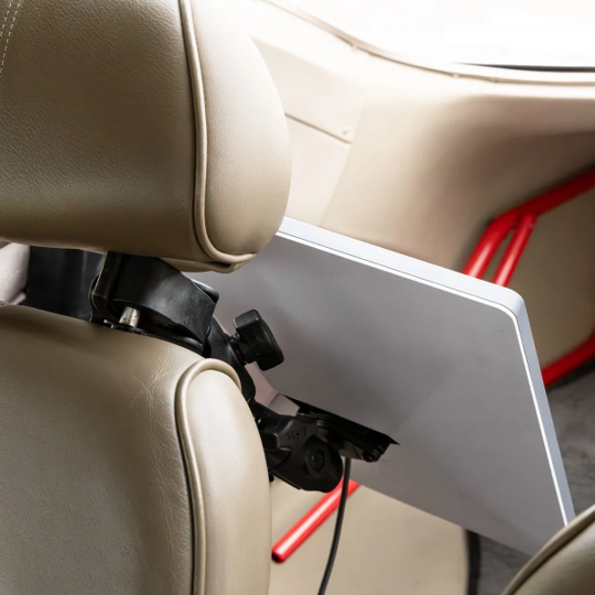 This RAM mount uses heavy-duty dual suction cups and a double-socket swivel arm for a stable, secure hold. Perfect for long cross-country flights and removable for RV or vehicle use.
